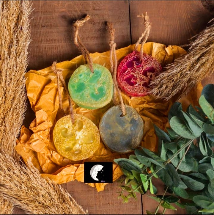 لوفا طبیعی،گلیسیرین، روغن های لوندر و گل همیشه بهار و ....